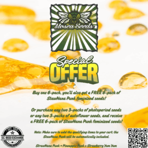 Buy one 6-pack, you’ll also get a FREE 6-pack of StawNana Punk feminized seeds!