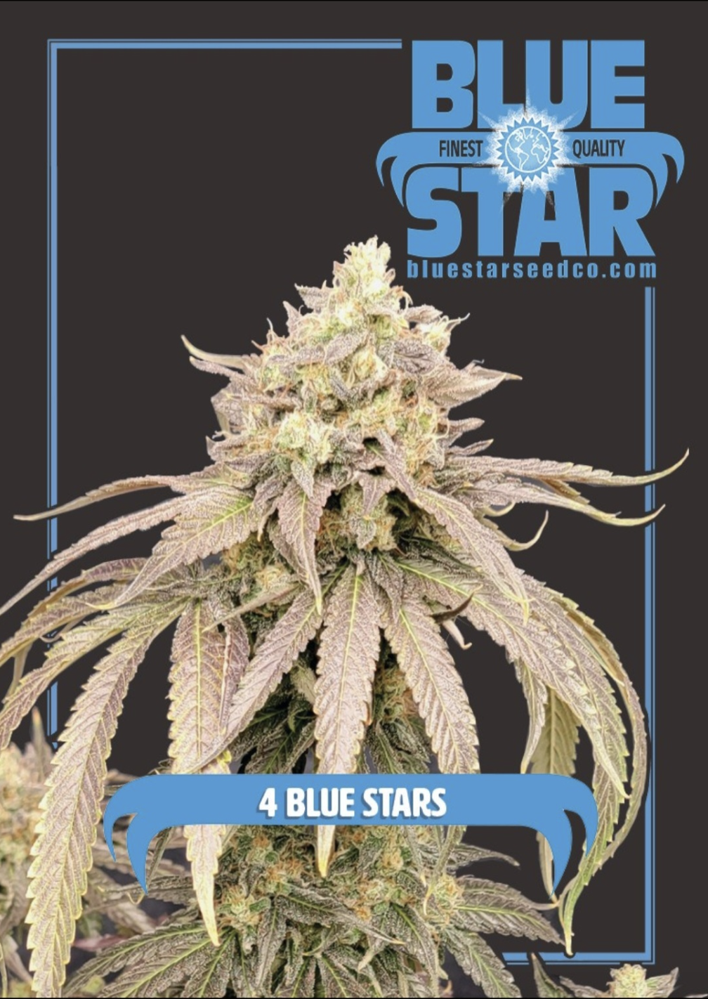 Blue Star Seed Co’s latest “joint” project with DJ Short brings you 4 Blue Stars, a four-way Blue Star back cross line featuring blueberry pie kush, cherry diesel, honey melon hashplant, and skunk diesel!