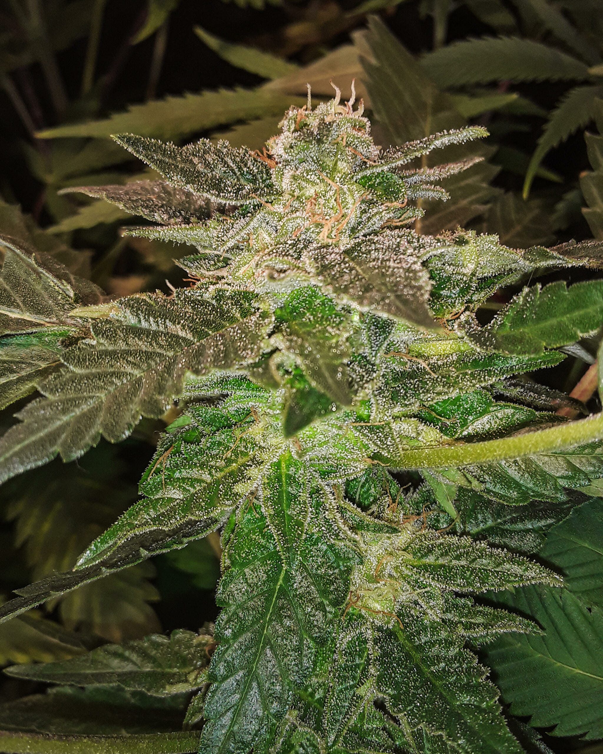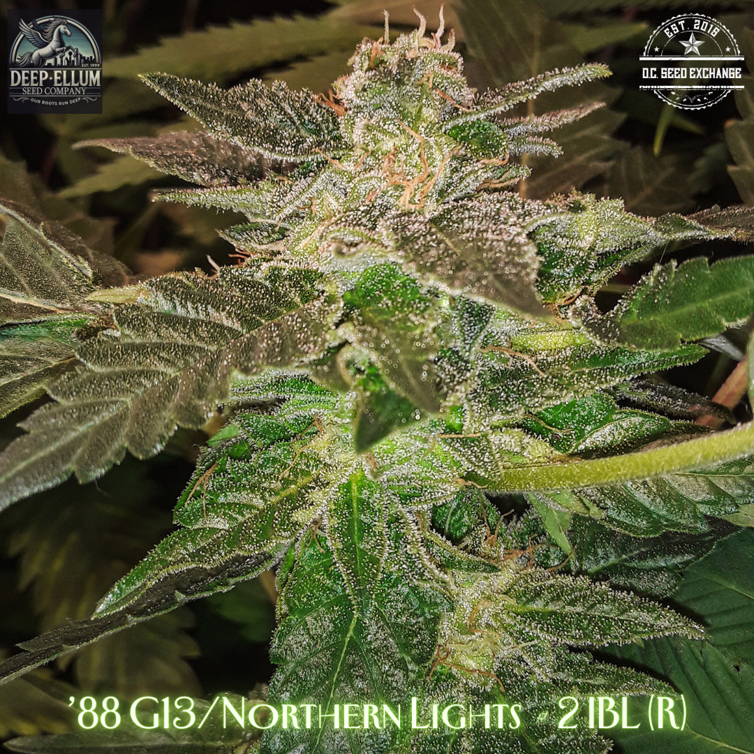 This forgotten gem from Nevil’s 1988 Seed Bank of Holland catalog is a stout Indica with a dank citrus flavor. Inbred in Texas from Nevil’s 1988 release since 1989. Crossed back to ’88NL2 in 2014, then cubed back to the IBL of ’88G13/NL2, and then inbred three times in Colorado. This is not Lady J’s Airborne G13.