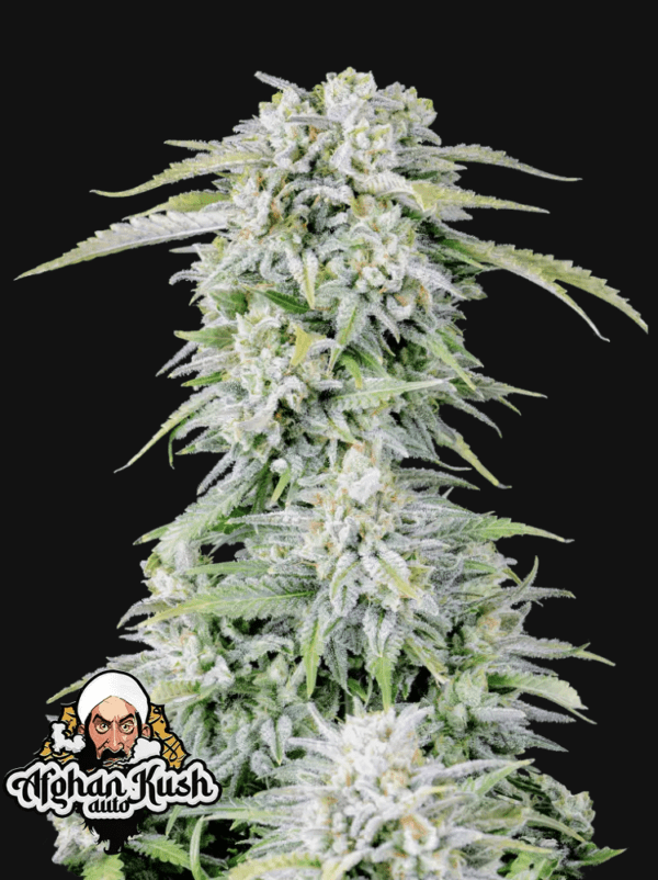 Afghan Kush Auto reaches in between 60-90cm but grows compact and usually stays on the shorter side, developing a short main cola and a few shorter side branches with big and wide dark-green fan leaves, typical of Indica-dominant strains. This variety grows large-sized thick light-green buds with dark-green hues that complement the buds perfectly. Expect an insane amount of trichomes that will start to appear early in the flowering stage and will start to reek of a delicious earthy and kushy aroma from early on so make sure you have your carbon filter ready.