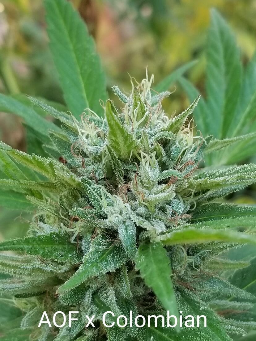 Aunt of Farouk Columbian is a cross of the Indica dominate Aunt of Farouk (aka Wild Pakistan) and Kagyu’s Sativa dominate Columbian.