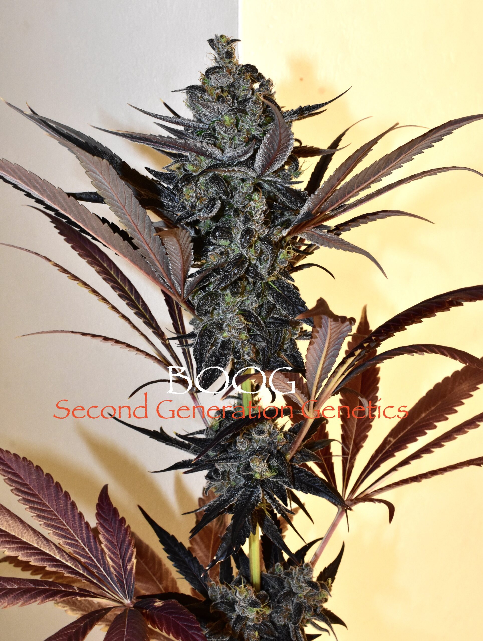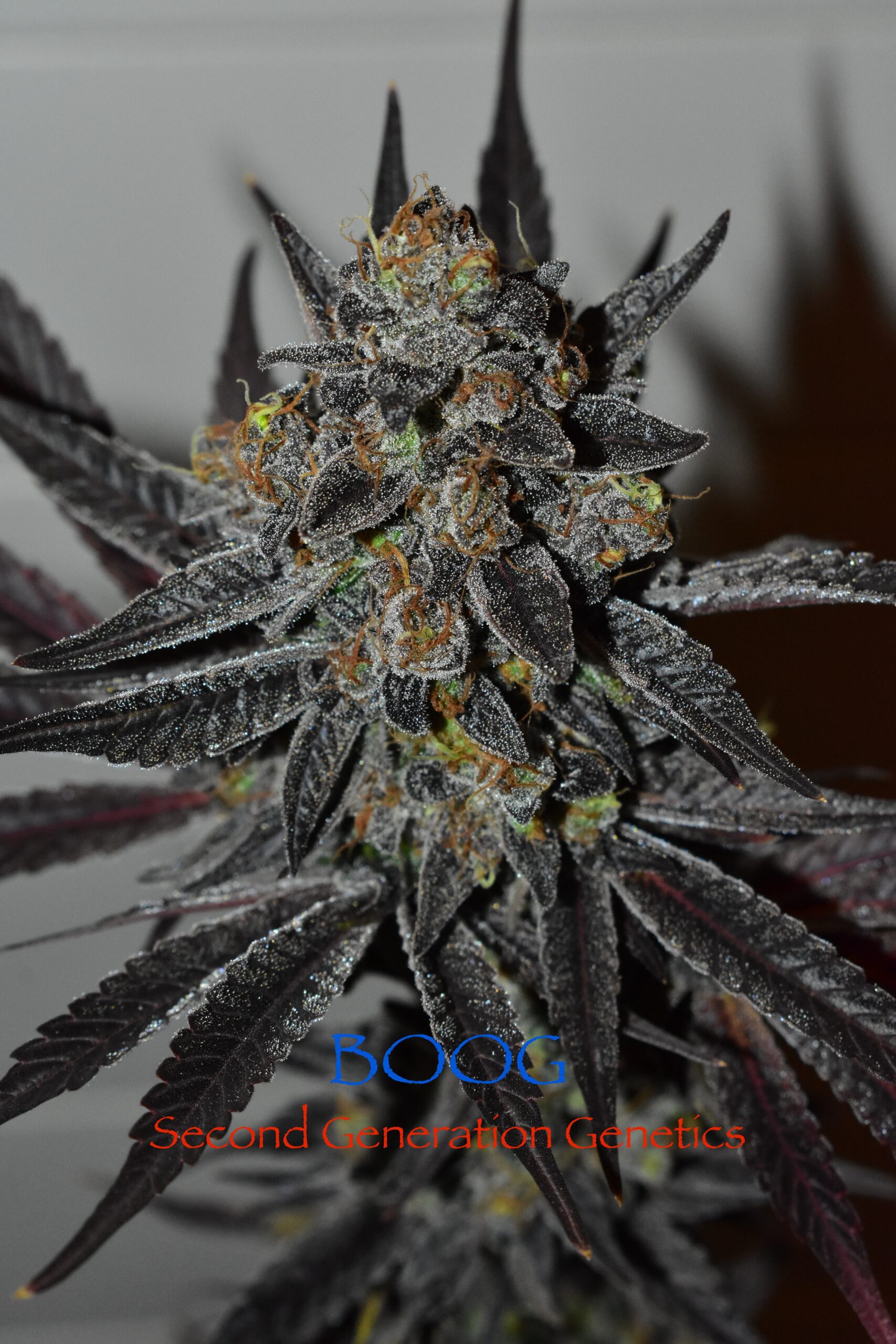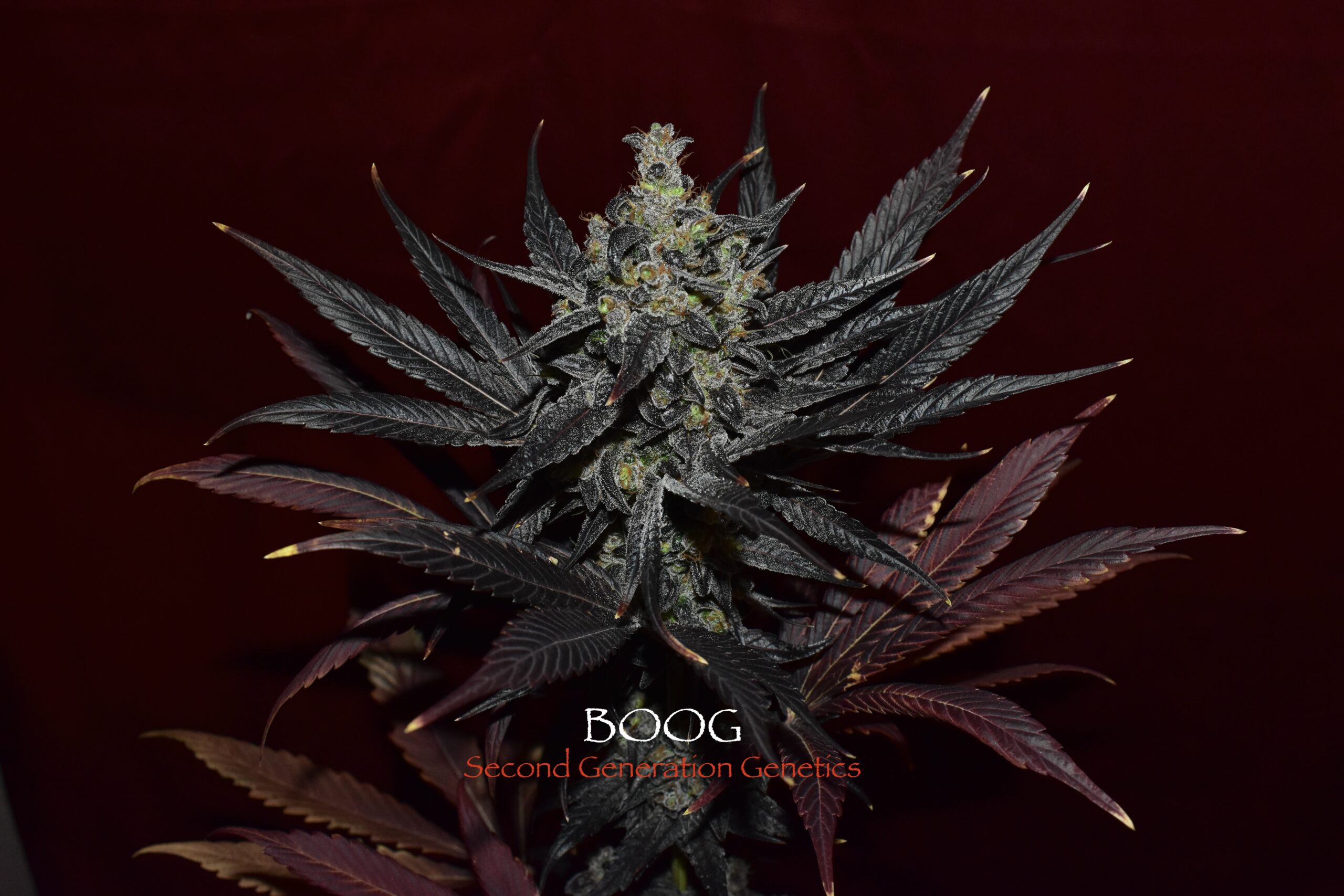 Second Generation Genetics is proud to introduce BOOG (Blue Onyx OG), a captivating F1 sativa/indica hybrid. This limited-edition strain boasts a unique lineage, combining Dosidos (mother) with DJ Short Cocoa Kush (father).