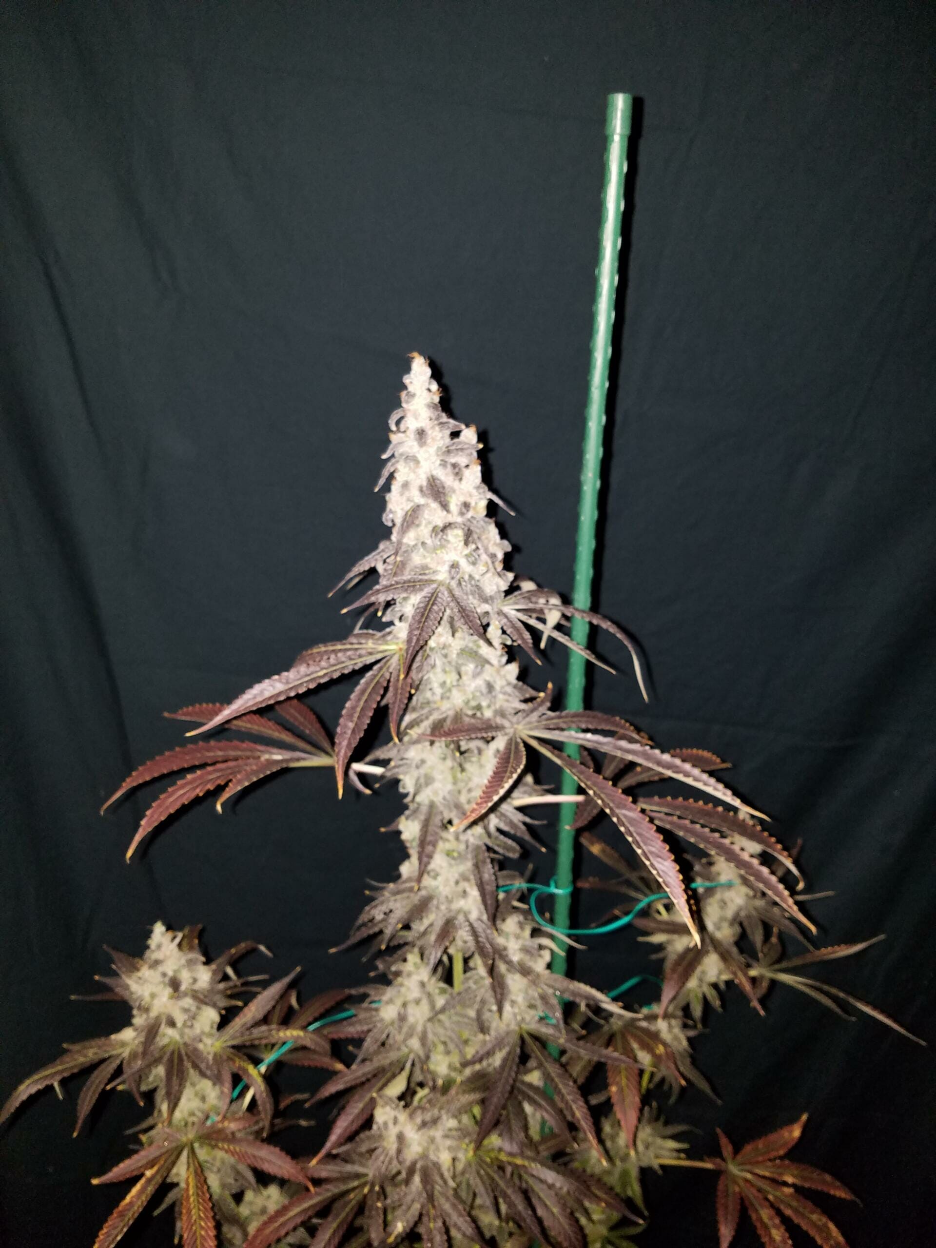 A 70% Sativa/30% Indica hybrid featuring a very uniform F1 structure. Flowering times range from 58 to 68 days. Long-running fox-tailed colas encompass medium stretch plants for a full, even canopy. Flavors of blueberries and citrus are supported by rich tropical fruit aromas followed by some diesel fuel notes. Culminating in a euphoric effect that is uplifting and stimulating, joyful, and long-lasting.
