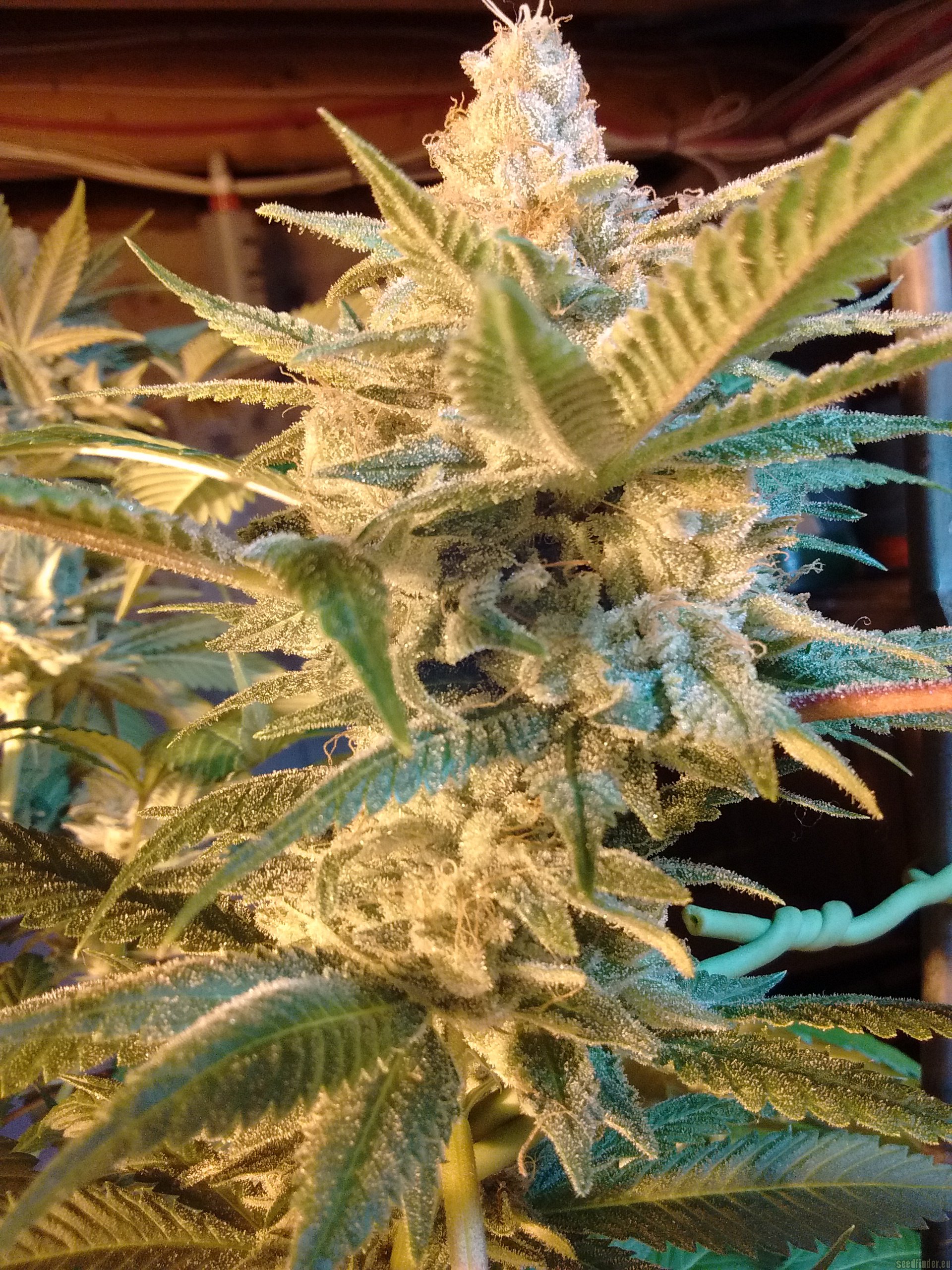 Sunshine daydream is a hybrid of one of my all-time favorites, Bubbashine, which is a cross of Bubba Kush and Bluemoonshine (rare stretch indica pheno). Bubbashine smells of hot buttered blueberry muffins and kush, grows like a big og covered in crystals, and has an amazing, potent, warm, snuggly, euphoric pain-relieving effect, especially good for nerve pain. The father of this hybrid is the heavyweight funk champion Appalachia (Green Crack x Tres Dawg).