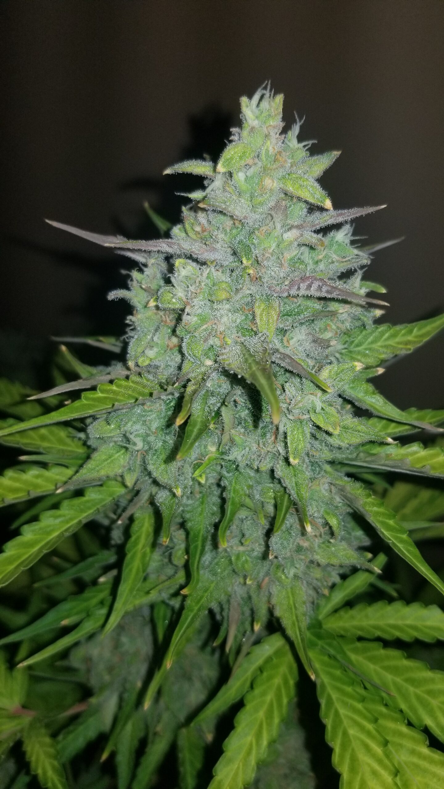 This strain will grow with a short and stout growth structure with thick Indica fan leaves and short internodal spacing. The buds will have a small compact appearance, and as this lady flowers the pistils will turn bright orange before fading to a dark brown. She will flower with one main cola with shorter side branches, filling out every internode with tight, greasy buds.
