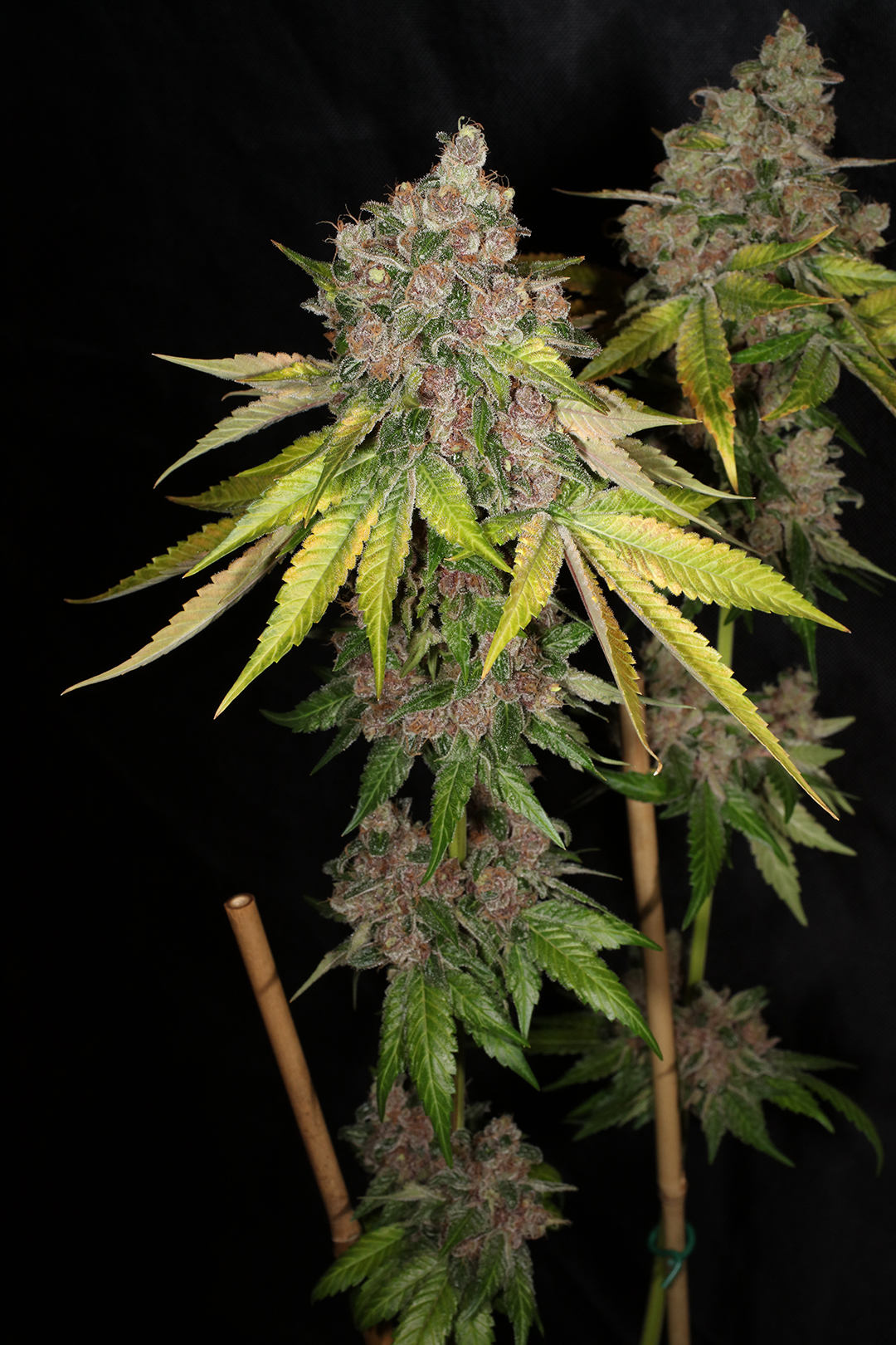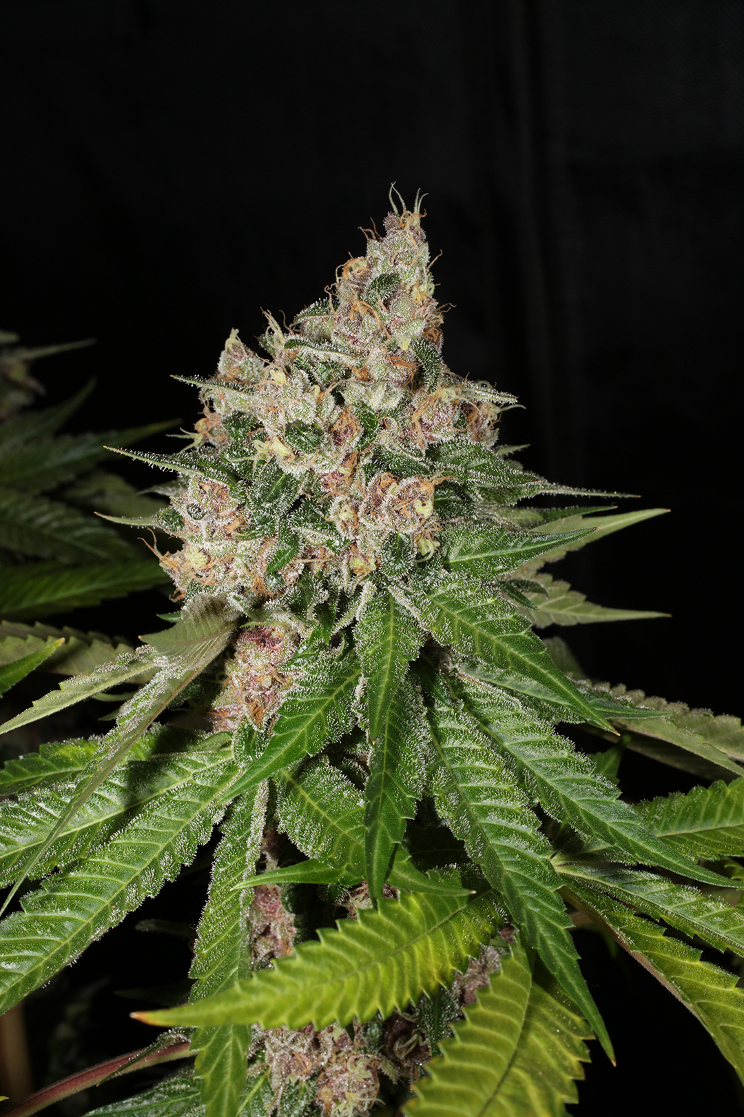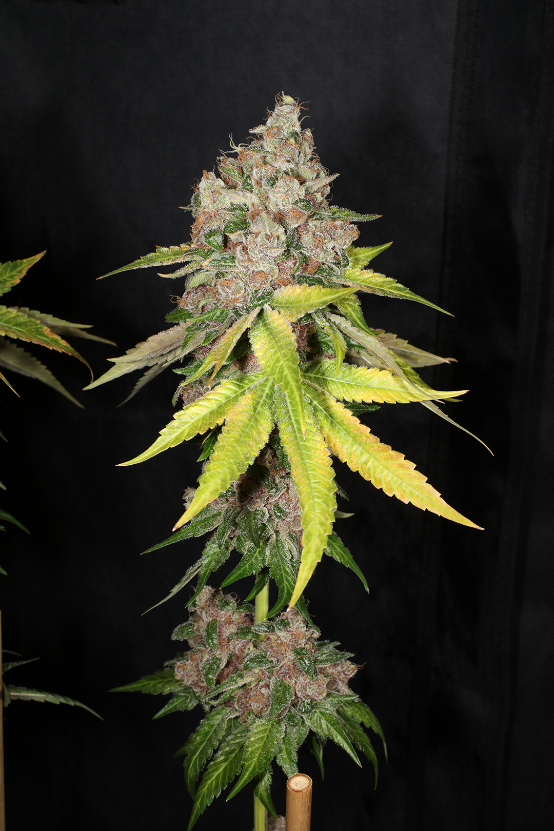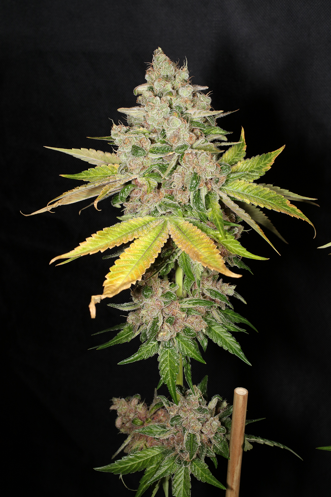 Pushes 30%, with the potential for many minor cannabinoids as well, such as CBG in substantial amounts. An absolute winner in every way. Strong branching and an easy grow, some buds get heavy enough to require support in the final weeks of flowering.