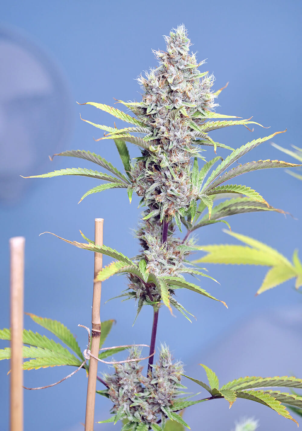 An incredible anti-anxiety Sativa with fast flowering time and an outstanding, unique flavor profile! This strain is pure energy and uplifted mood, with a strong happy effect. Nice yields of extremely exotic flower, with a good bud to leaf ratio that makes trimming a lot faster than you’d imagine. Natural foxtail structures on large, dense frosty nugs make these some of the most beautiful exotic buds around. This foxtail structure is natural and not a sign of stress, it’s actually a good thing, a big blessing from some of the most special sativa genetics in the world. Many of the best memorable and unique effects in cannabis come from plants with this bud structure! The flavor and aroma are sure to turn heads, as it is extremely unique! A mouth-coating flavor of the Swabi Pakistani, combined with some orange and grape candy tones from PuTang, this is a pure happy uplifting flavor experience, clean, sharp, and totally delicious!