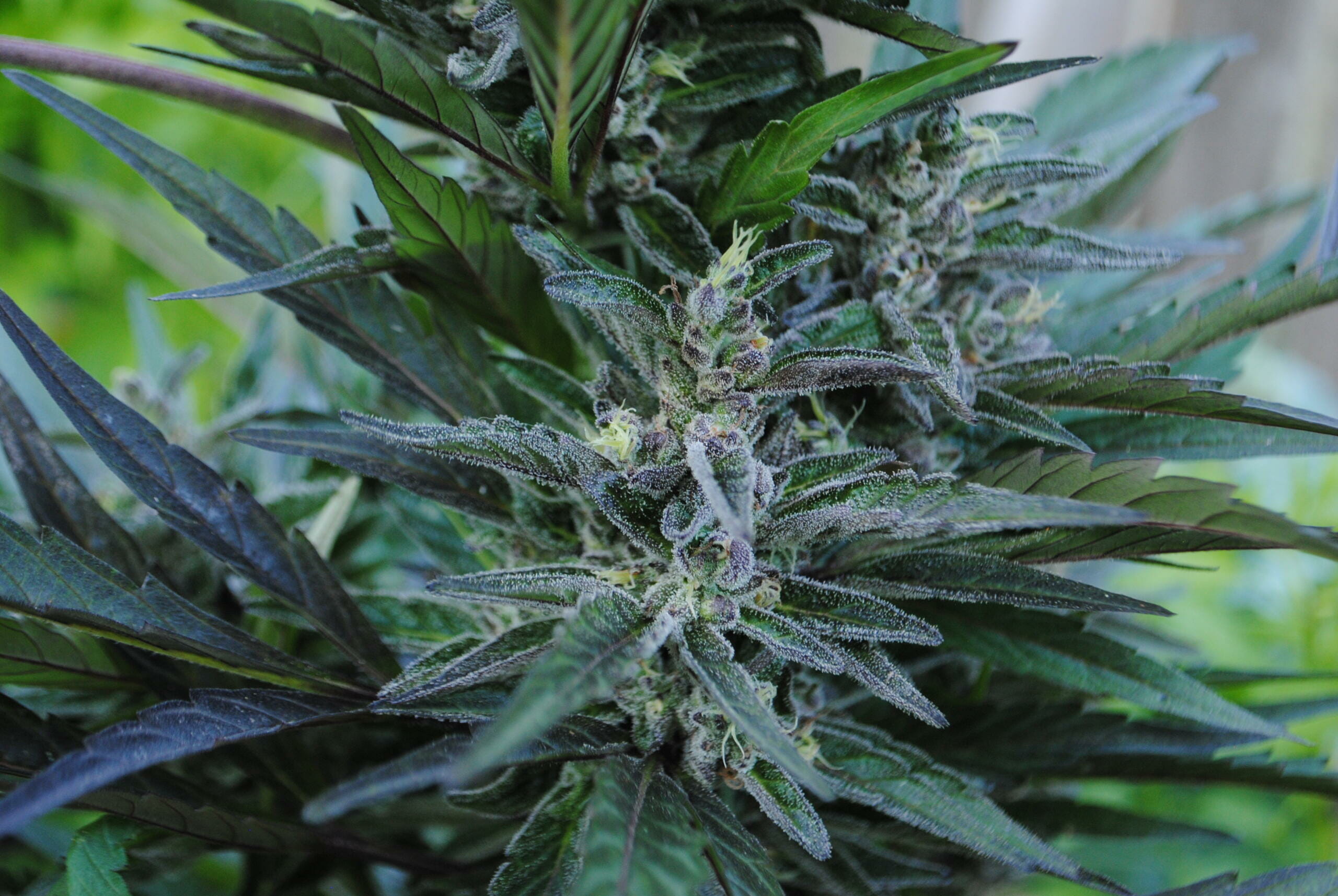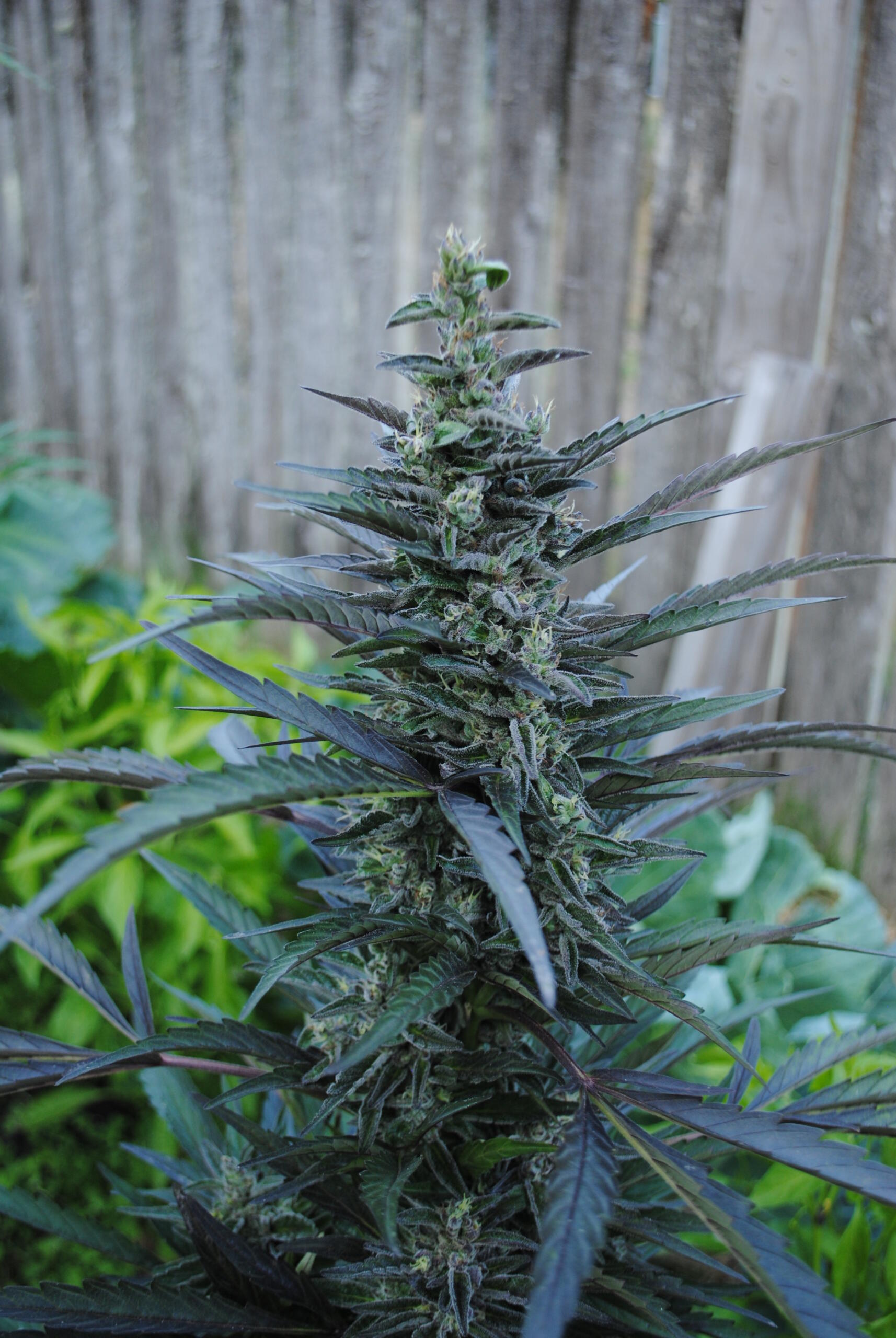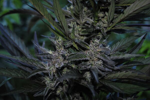 What sets her apart from the rest of the family are a few things. Both parents were selected for resin production as well as leaf color. The fathers used in this line produced both resin coverage as well as the black/red leaf traits. Her resin production is great for making hash and can see high returns on washing or pressing for rosin. Her flowers are highlighted in purple and some full purple flowers can be found.