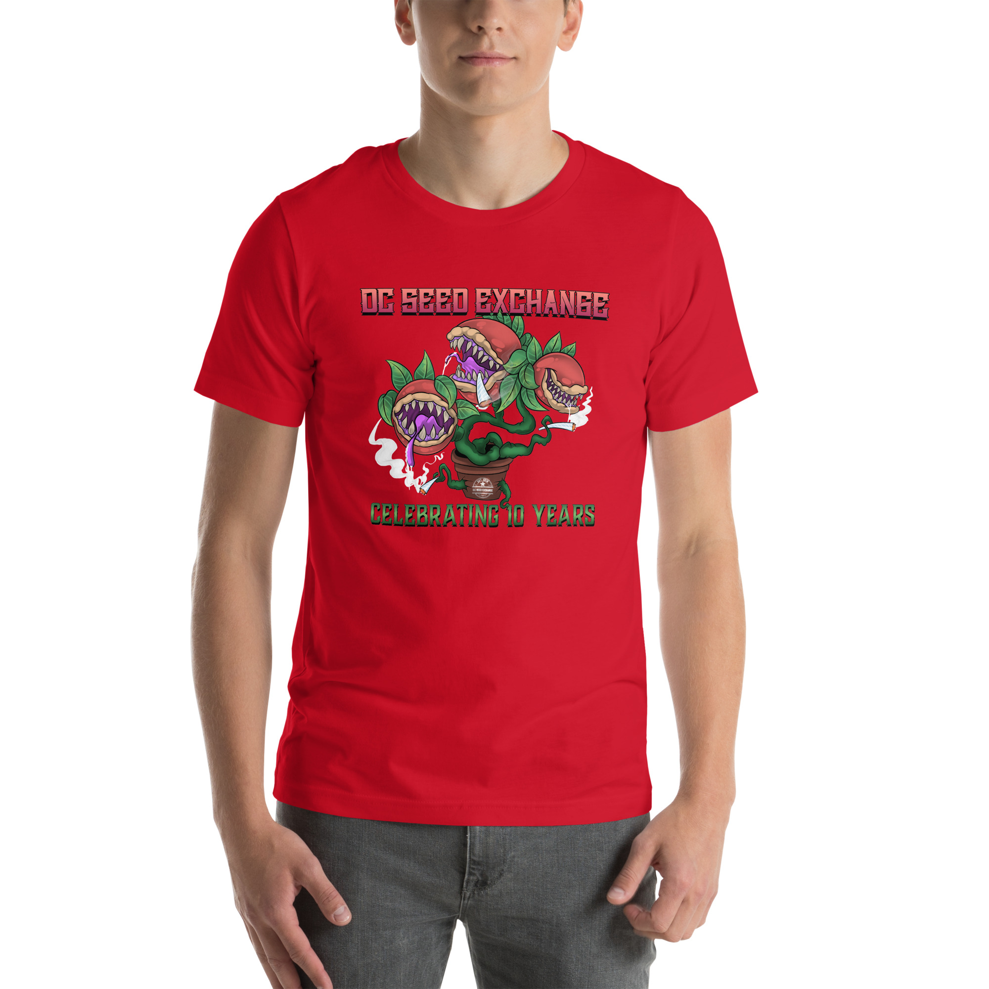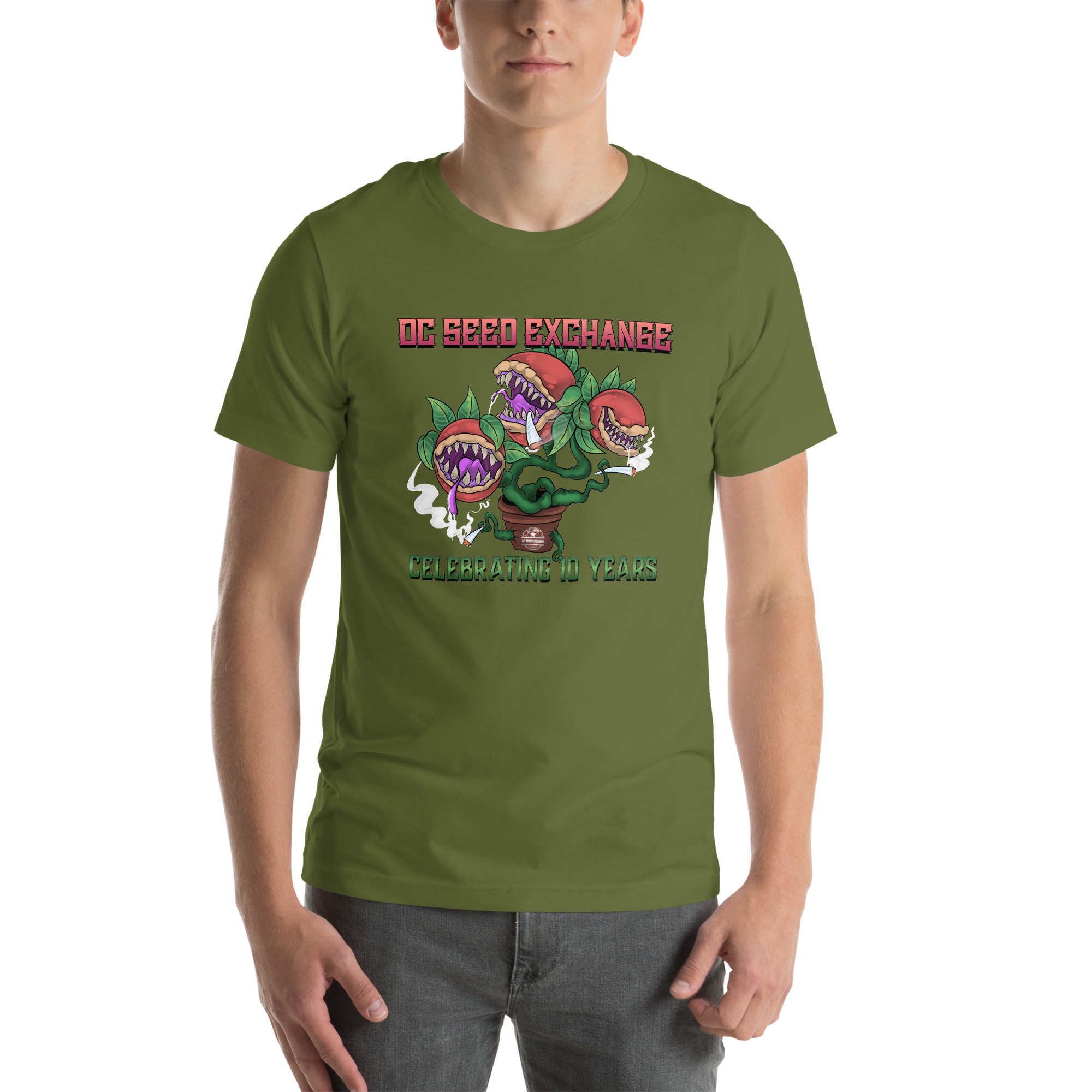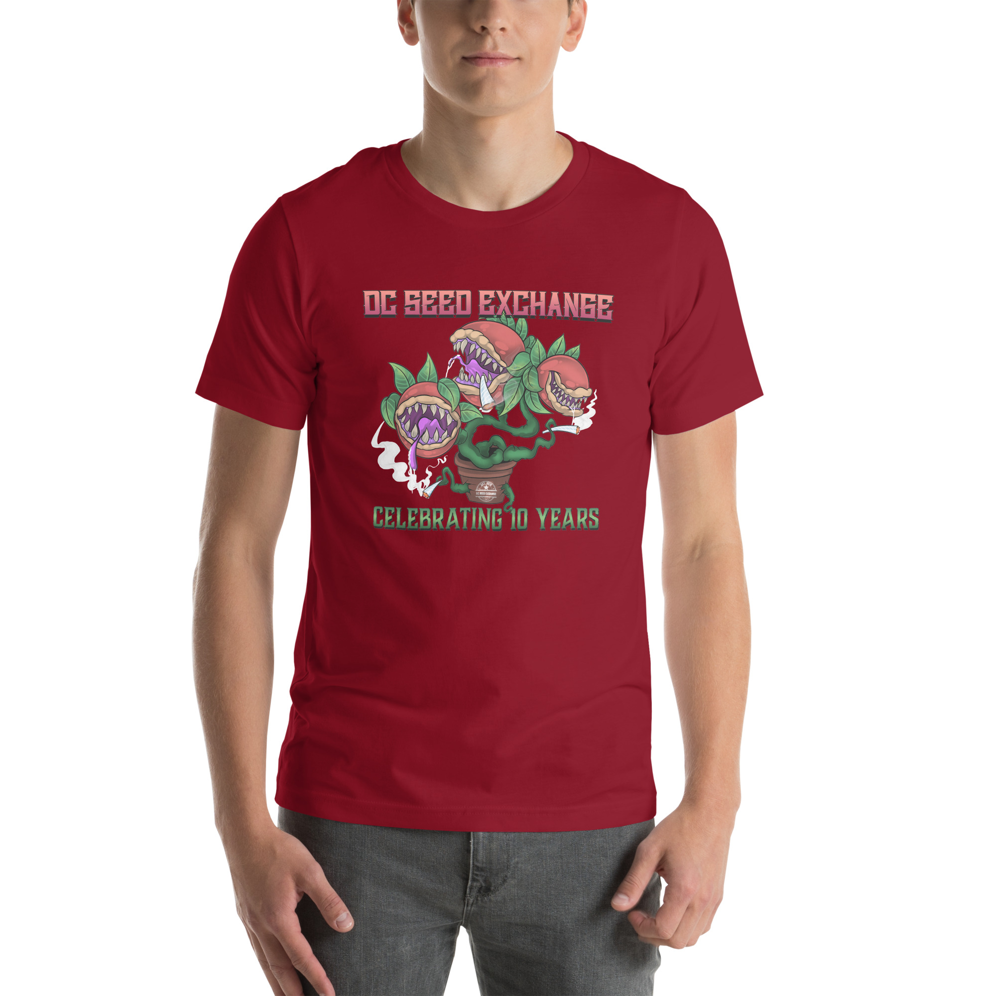 This isn’t just a shirt; it’s a celebration of our 10-year milestone, inspired by the unforgettable plant from Little Shop of Horrors!