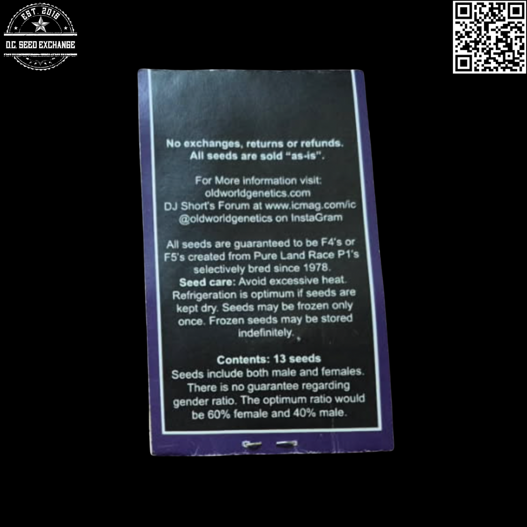 You are bidding on one original Dj Short Old World Genetics The Original Flo F5 13 Regular Photoperiod Seeds pack!