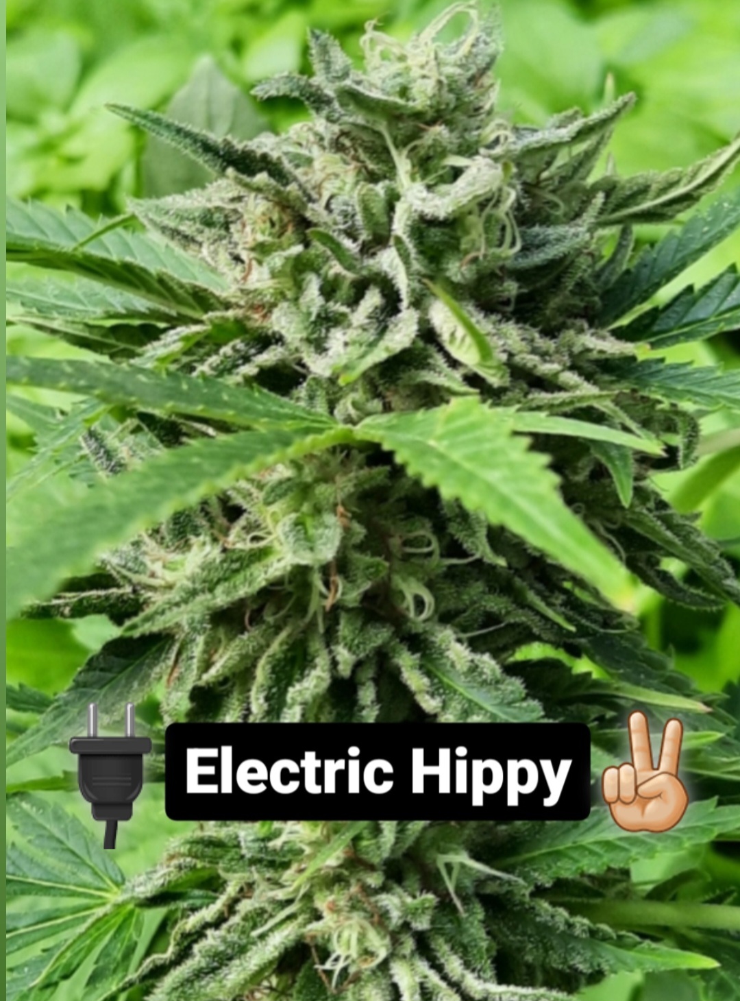 Copa Genetics Electric Hippy is an F1 photoperiod cross of 100 Amp Cut and Copa’s Appalachia (Appy) F4 variegated male!