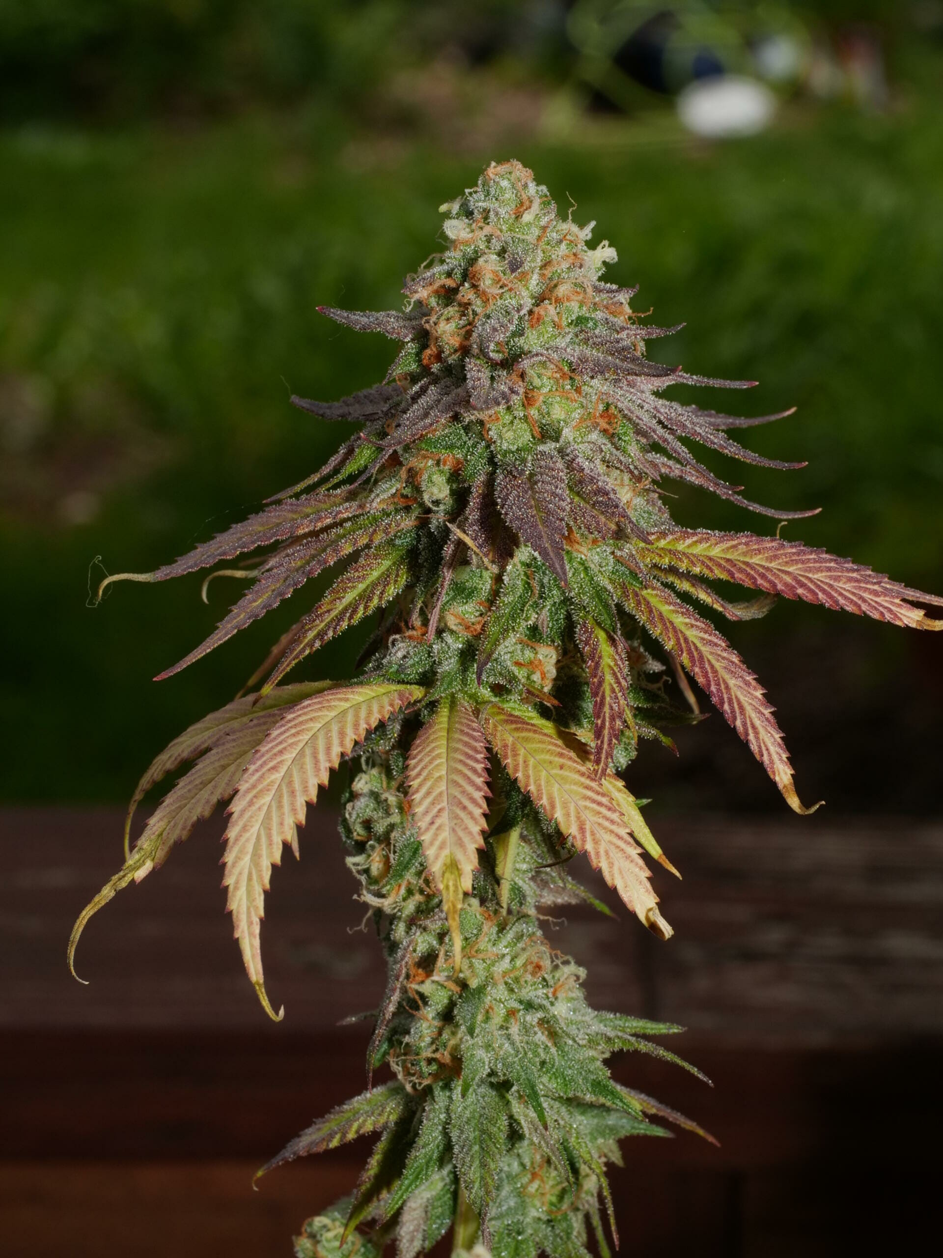 Emoji grows tons of rock-hard dense buds, full of frost, with various shades of green to purple, some being extra white with frost. An easy plant to grow, strong branches that need no support, and a great yield. Maximum bag appeal.