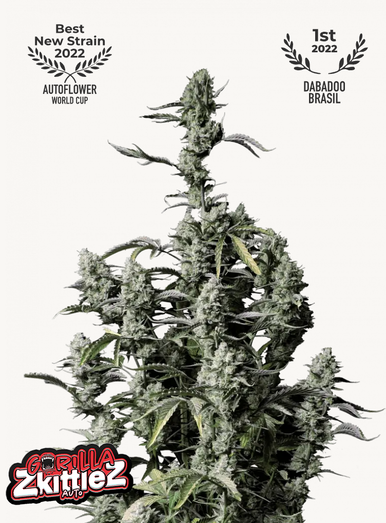Taste real power with the exquisite Gorilla Zkittlez Auto. This genetic masterpiece is the perfect choice for avid consumers looking for a long-lasting effect. It’s a new-school hybrid that comes with a hard-to-describe terpene profile reminiscent of old-school flavors with a delicious fruity candy modern twist, offering the whole spectrum of effects that start as a strong joyful head high that boosts creativity before turning into a long-lasting body stone. With up to 25% THC, this Indica-dominant hybrid yields up to 550gr/m2 of extraordinarily resinous buds in just under 65 days, making it the perfect choice for extractors and hash makers looking for the most aggressive trichome producers in auto version.