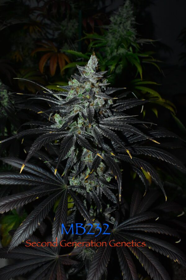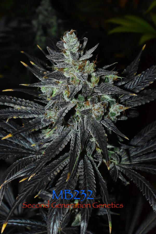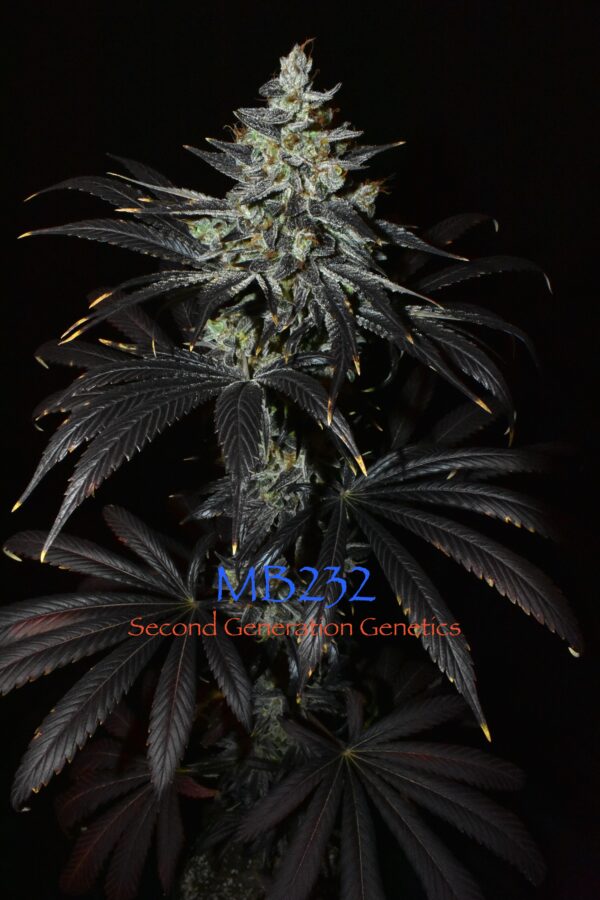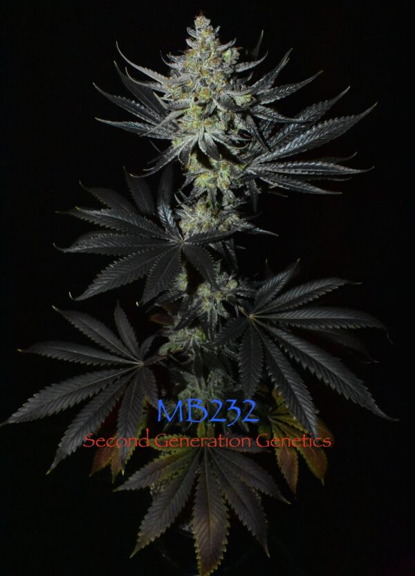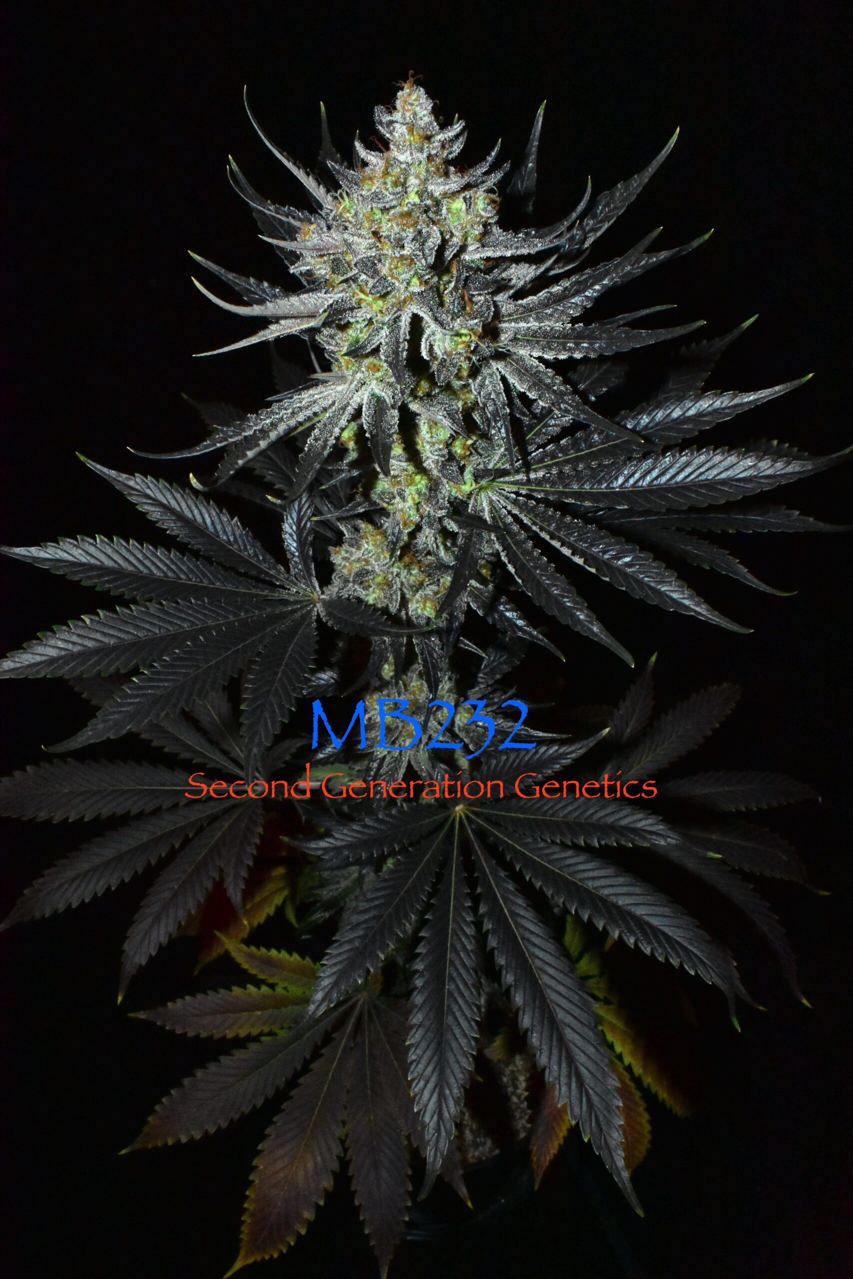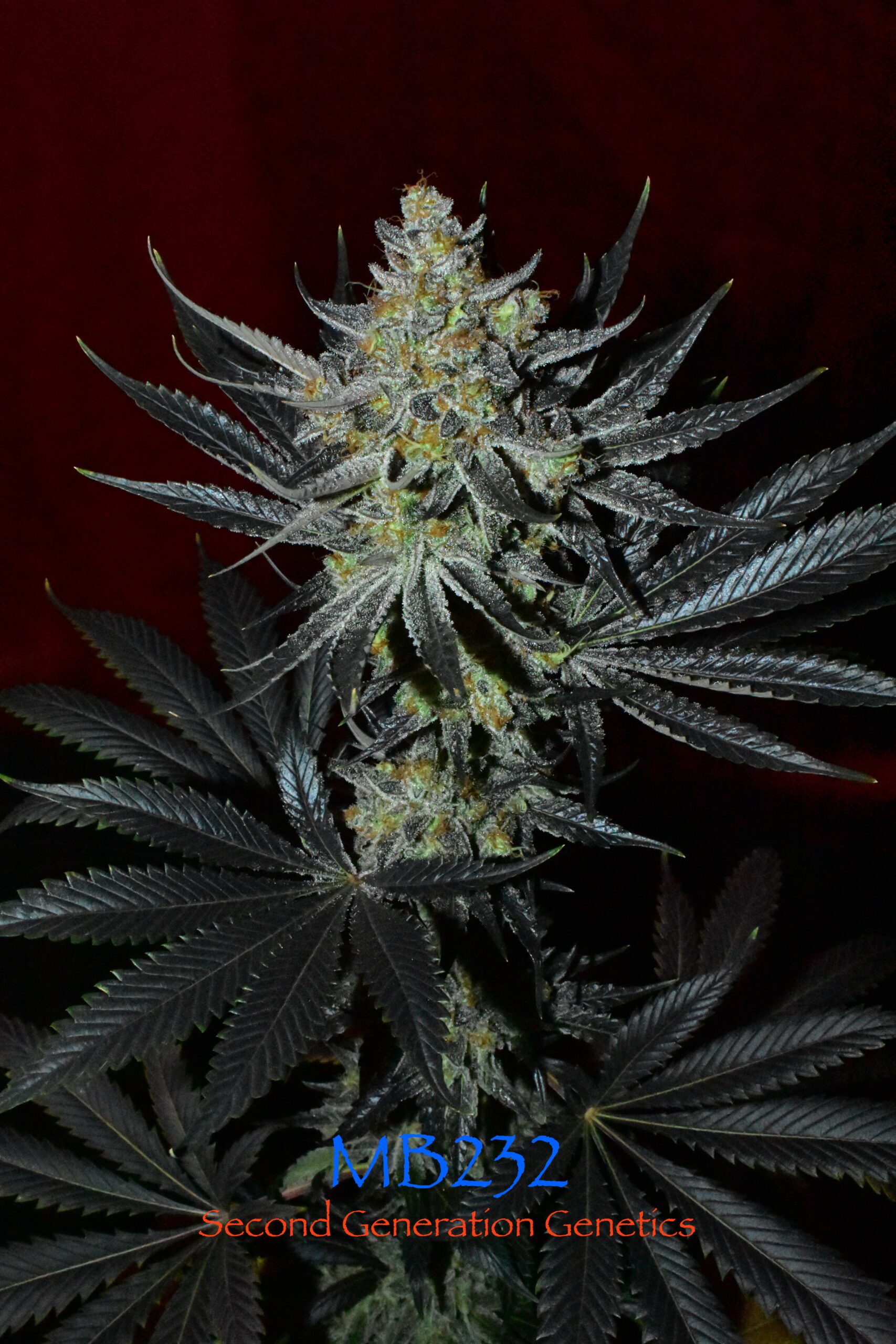 Production: The MB232 is a medium well to heavy producer. The females produce fluffy but large spear-shaped colas with deep violet colors covered in resin. The MB232 smells of sweet grape incense with perfume and baby powder notes.