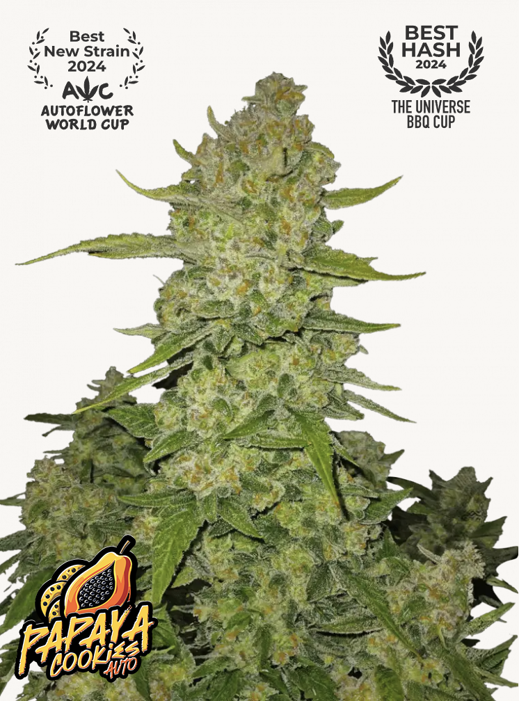 This strain develops amazingly well-structured and boasts really quick plant growth, showing you its full potential with ease. Papaya Cookies Auto reaches up to 120 cm in height, with ideal internodal spacing for plant training and super fat buds that reek of exotic fruit as early as week 5. A must-grow for those aiming to maximize yields as quickly as possible without sacrificing quality.
