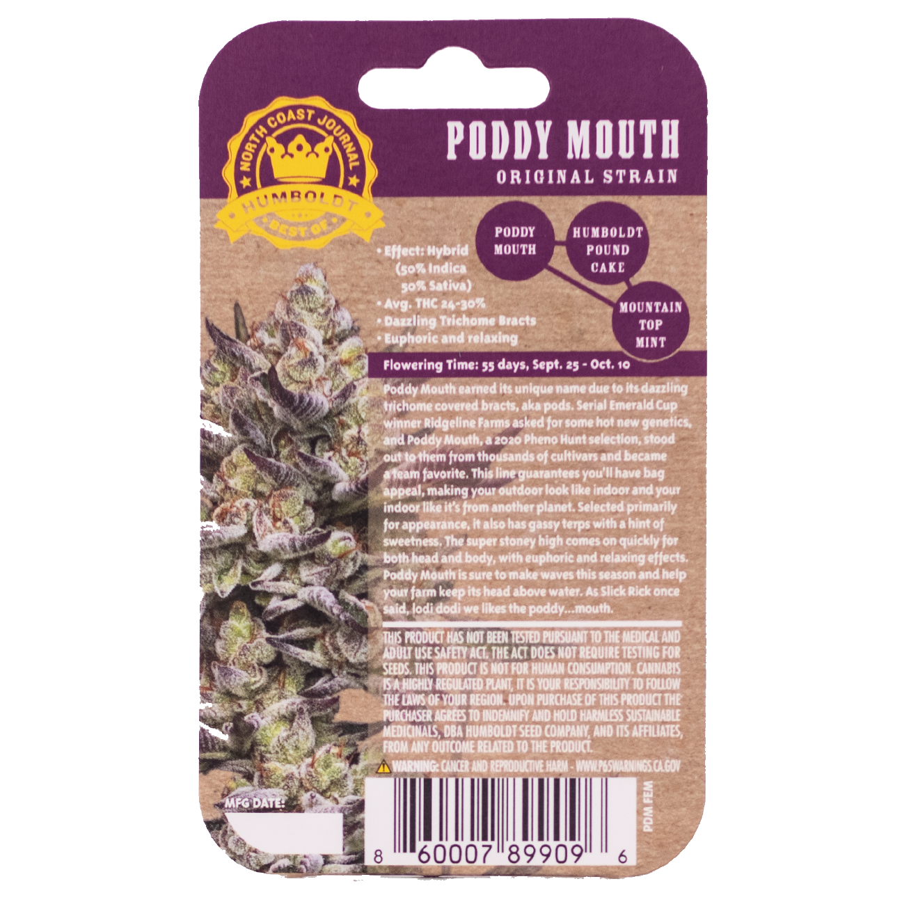 Poddy Mouth earned its unique name through R&D at Ridgeline Farms due to its dazzling trichome-covered bracts, aka pods. Originally selected in our 2020 Pheno Hunt, Poddy Mouth stood out from thousands of cultivars and quickly became a team favorite. Serial Emerald Cup winner Ridgeline Farms asked for some hot new genetics, and this one really stood out for him. This line guarantees you’ll have bag appeal and moves off the shelf quickly, making your outdoor look like indoor and your indoor like it’s from another planet. Selection of this line was based primarily on appearance but it does have gassy terps with a hint of sweetness. The super stoney high comes on quickly for both head and body, with euphoric and relaxing effects.