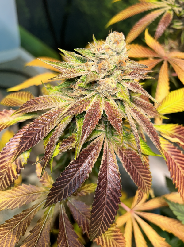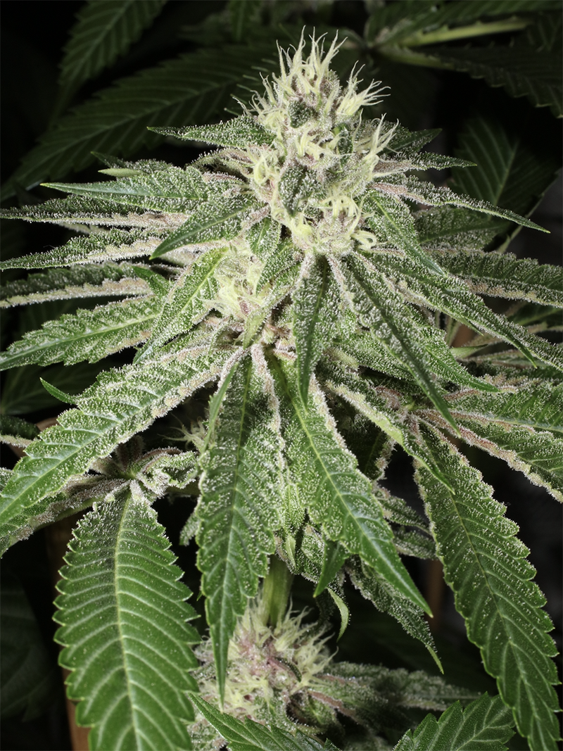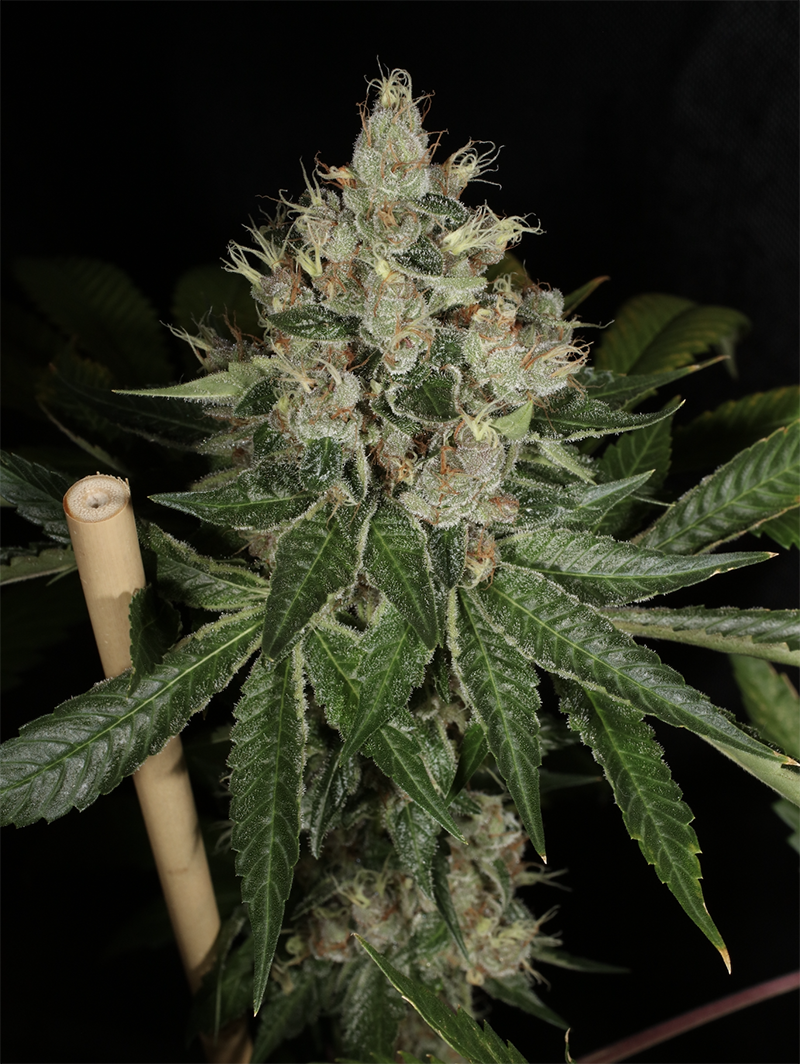 Plants generally maintain the classic OG kush structure, with larger buds than each parent alone. Expect a 2.5x stretch with strong branching. Flower time of 7 to 9 weeks, depending on phenotype.
