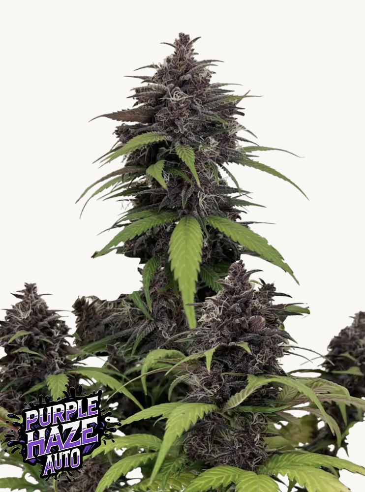Purple Haze Auto is a sativa-dominant autoflower turbocharged for today’s growers and connoisseurs. Now faster, stronger, and infused with luscious cherry undertones, this modern take on a classic delivers high yields of vivid purple buds in just under 60 days. It takes everything you love about the classic—its invigorating high, unmistakable aroma, and iconic purple-hued buds—and elevates it to an even higher level. Bred to produce fast, bountiful harvests, Purple Haze Auto goes from seed to harvest in just 8 weeks, making it one of the fastest strains available—producing high yields of gorgeous, bright purple buds with glowing amber crystals drenched in frosty trichome crystals. Resilient and hardy, she prefers plenty of sunshine, and cooler temperatures will intensify the rich purple hues of her dense, sticky flowers. Think warm days and cool nights for the brightest purple buds, and she’ll thrive outside in cooler Northern regions. Using bright LEDs and lowering the temp in the grow room can help bring out her brilliant hues. This strain doesn’t require any special care and is very easy to handle, making it a great choice for novice or busy growers. Remember that even with minimum feeding, Purple Haze develops massive colas that will likely need support later in flowering so they don’t snap under the heavy weight of buds. Sticking bamboo stakes in the soil and securing the branches with string or garden ties will help. Upon smoking, a wave of sweet cherry and sour lemon greets the palate immediately on the inhale, beautifully balanced by a haze finish. With her 23% THC content and sativa lineage, she offers a pleasantly light, yet stimulating and euphoric high that sparks creativity and inspires sociability without the overpowering racy effect common with some sativa-dominant strains. Whether diving into artistic endeavors or simply vibing with friends, this strain is the ticket to an inspired, uplifting experience. Modernized, optimized, and bursting with color—the future of a timeless legend.