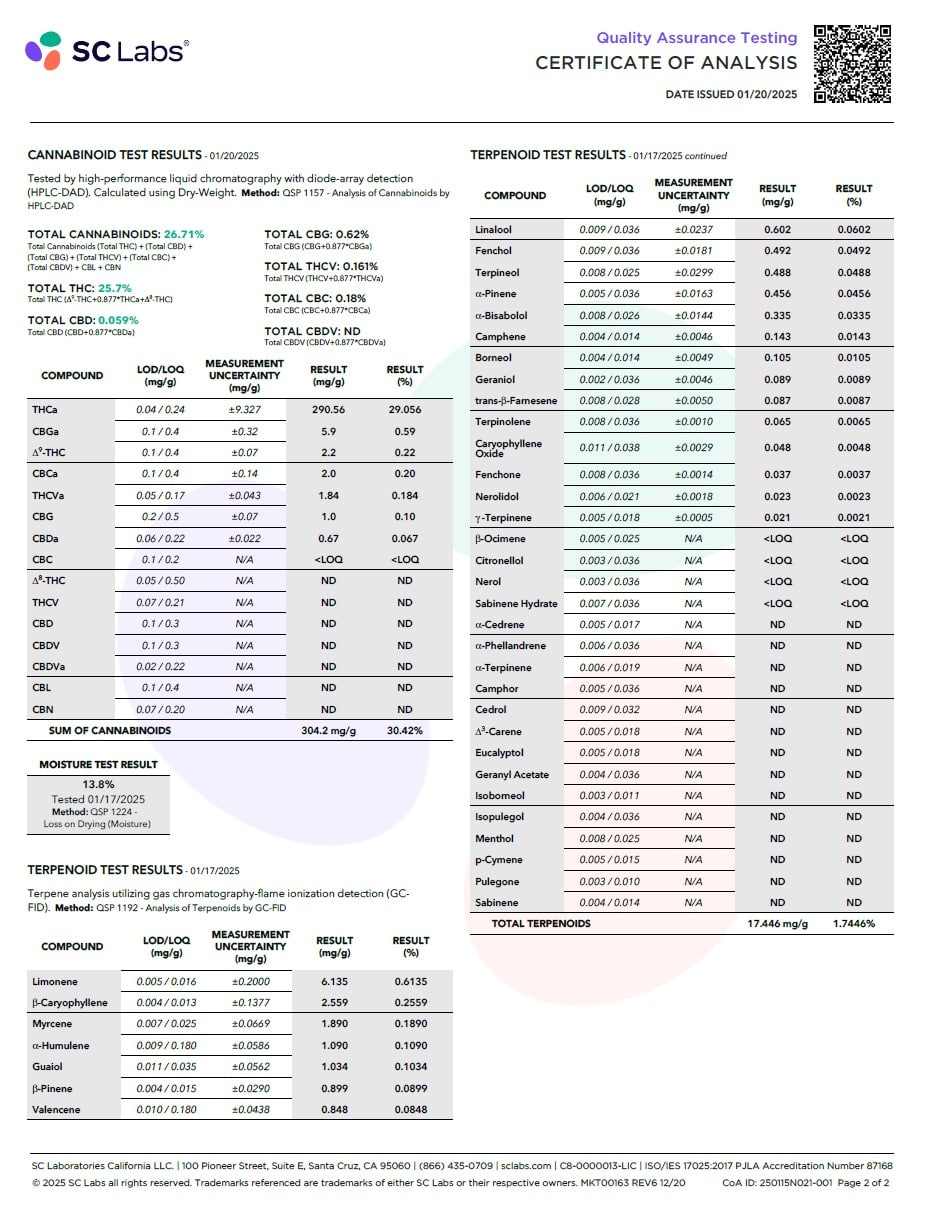These seed packs come with our Cannverify security labels, which have a QR code. Point your cell phone camera at the QR code, and a link will pop up that will take you to a page showing all of this grow info listed here, photos, and lab results showing terpenes and cannabinoids. You can also visit the Cannverify.com website and manually enter the serial number to access this information anytime.