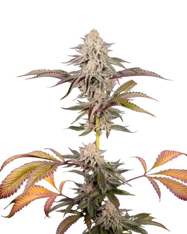 Sweet candy and dank, floral earth come crashing together in this remarkable strain. She likes to get colorful towards the end, with only a few rare plants keeping their green color until finished. The rest will form rainbow hues and purple accents all over. She is an absolute stunner, with relaxin,g smooth hybrid effects and a taste you will want more and more of. Complex berry candy notes meet dark earth and bright floral arrangements that smack your mouth and throat and stick around so you remember it later. It makes delicious concentrate and is exceptional when rolled up. It grows well in just about any condition and is perfect for growers who love plants that are easy to stare at for hours.