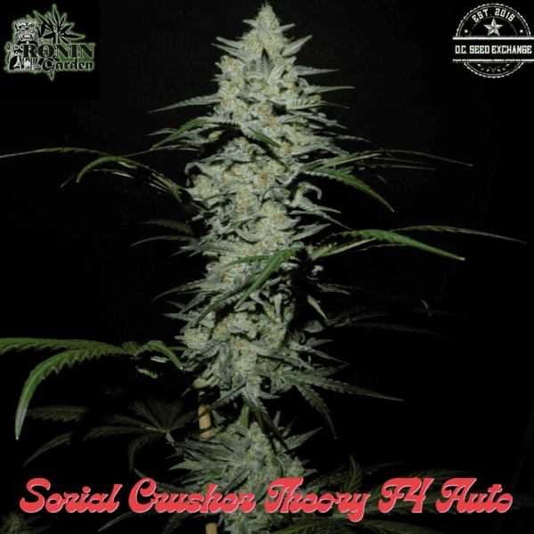 Ronin Garden’s back with their blades blazing, unleashing the Serial Crusher Theory F4 Autoflower upon the unsuspecting garden! This is a genetic juggernaut born from the unholy union of White Triangle and White Stomper, ready to crush your harvest expectations and rock your taste buds to the core!